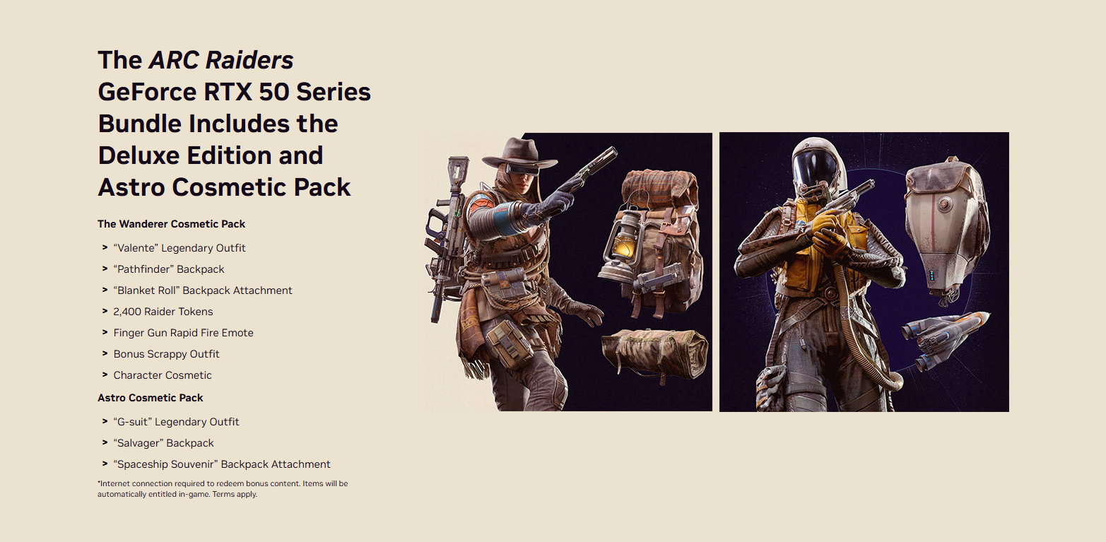 Trong thời gian giới hạn, hãy nhận ARC Raiders Deluxe Edition cộng với Gói mỹ phẩm Astro khi mua hệ thống máy tính để bàn hoặc card đồ họa NVIDIA GeForce RTX™ 5090, 5080, 5070 Ti, 5070 đủ điều kiện.
